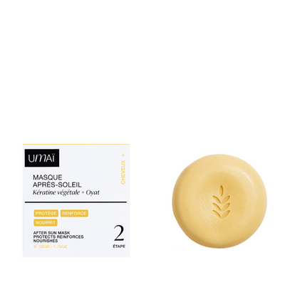 Le Masque Après-soleil de la marque Umaï est un produit capillaire ultra-complet conçu pour protéger et revitaliser les cheveux exposés aux effets néfastes du soleil, en particulier les rayons UV, le sable et le sel. Ce masque convient à tous les types de cheveux, y compris les cheveux colorés et sensibles, et il est formulé pour restaurer la vitalité des cheveux après une exposition au soleil.