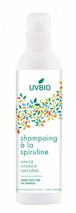 Le shampoing bio UVBIO à la Spiruline nettoie la chevelure tout en douceur grâce à sa composition toute douce.