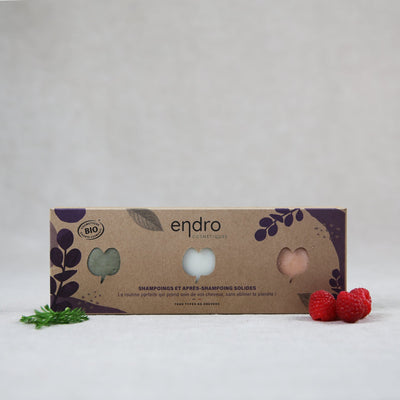 Pour prendre soin de vous, le Kit routine capillaire solide Endro comprend :