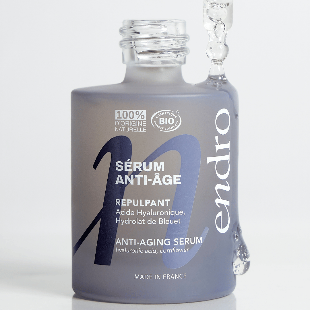 Le Sérum Anti-âge Repulpant de la marque Endro est un soin visage conçu pour lutter contre les premiers signes de l'âge. Sa formule est composée d'ingrédients d'origine naturelle, notamment l'acide hyaluronique et l'aloe vera, qui hydratent et revitalisent la peau. Après 3 semaines d'application, les premiers effets sont visibles et la peau est repulpée, plus ferme et plus lisse.